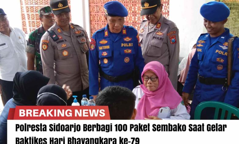 Menyambut Hari Bhayangkara ke-79, Polresta Sidoarjo Polda Jatim menunjukkan komitmennya dengan mendekatkan diri kepada masyarakat, melalui kegiatan bakti kesehatan (Baktikes) berupa pengobatan gratis.