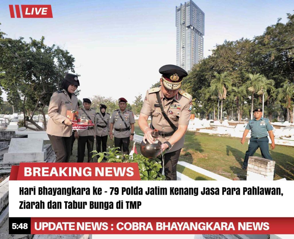 Kombes Pol Abast juga mengatakan, kegiatan tabur bunga menyambut Hari Bhayangkara ke – 79 ini juga dilaksanakan oleh seluruh satuan wilayah Polda Jawa Timur di TMP yang ada di wilayah masing – masing.