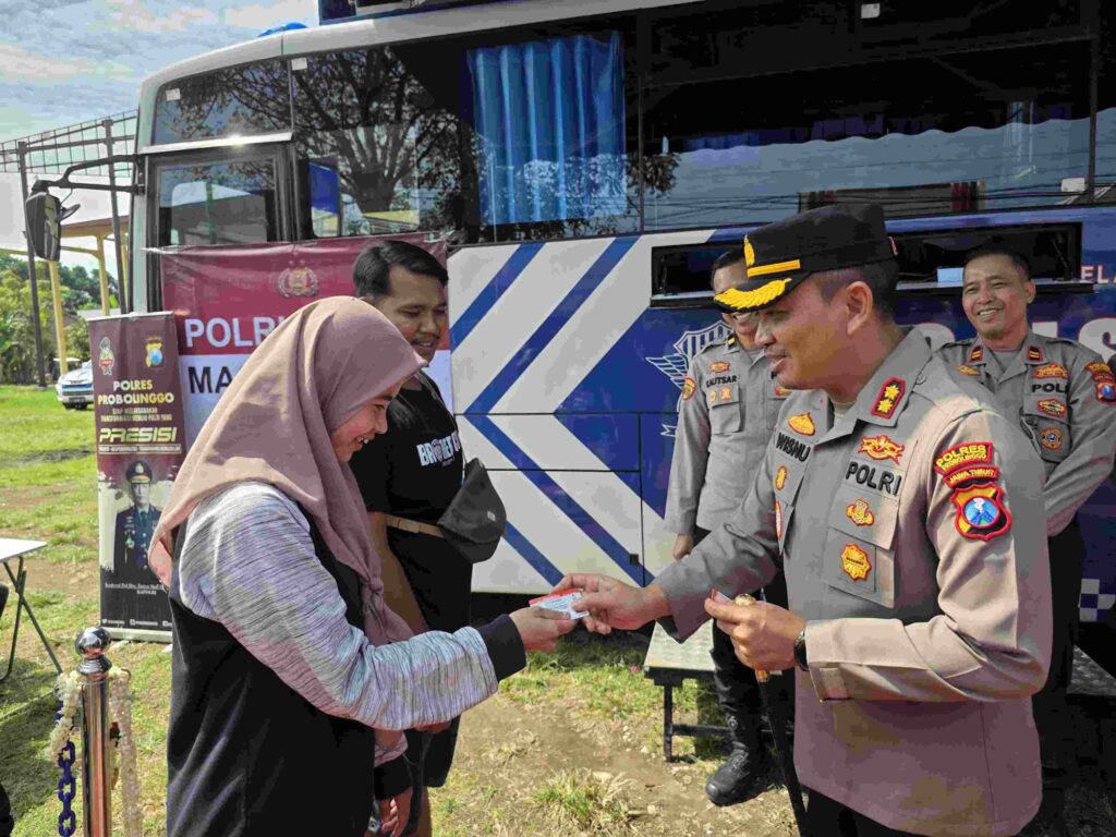 Selain melaunching bus SIM keliling, Kapolres Probolinggo juga memberikan bingkisan kepada para pemohon SIM sebagai rasa syukur dalam menyambut Hari Bhayangkara ke-79. (*)
