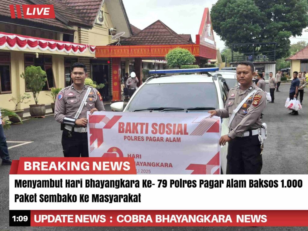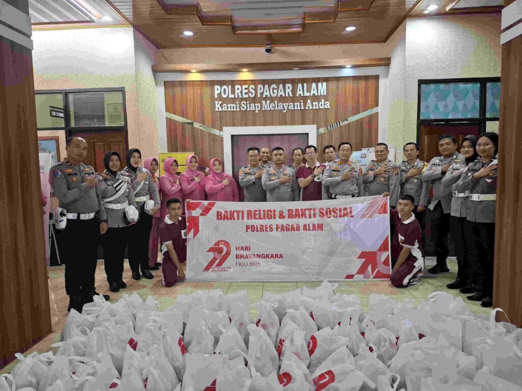 Tahun 2025, Polres Pagar Alam menggelar aksi nyata wujud melayani masyarakat di wilayah hukumnya, melakukan giat bhakti sosial dengan menyalurkan 1.000 paket sembako.