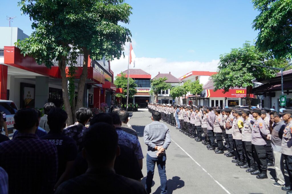 Polres Ponorogo Polda Jatim menerjunkan 430 personel gabungan untuk mengamankan rangkaian acara Kirab Pusaka, Pawai Lintas Sejarah, dan Jamasan Pusaka Sejarah dalam rangka Grebeg Suro 2025, Kamis (26/6/2025).
