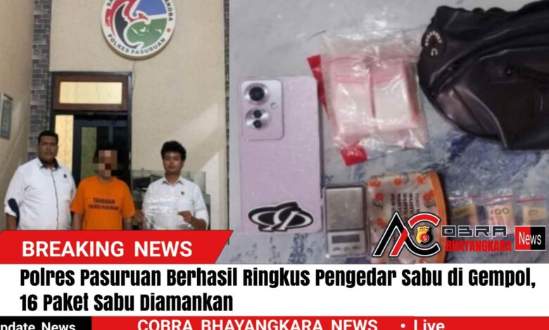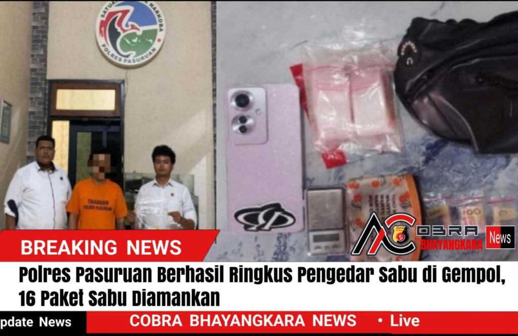 Satuan Reserse Narkoba Polres Pasuruan kembali mencatat prestasi dalam memberantas peredaran narkotika di wilayah hukumnya. Seorang pria berinisial PAR (30), warga Dusun Betro, Desa Wonosunyo, Kecamatan Gempol, Kabupaten Pasuruan, ditangkap atas dugaan sebagai pengedar narkotika jenis sabu, Sabtu pekan lalu.