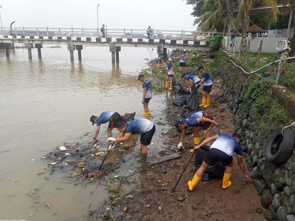 Di lokasi terpisah, tepatnya di Posbinpotmar 1 Ilir, prajurit dari Lanal Palembang dan KRI Banda Aceh-593 melakukan aksi gotong royong membersihkan sampah di tepi Sungai Musi.