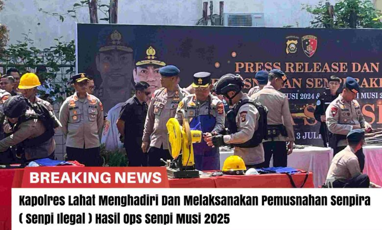 Kapolres Lahat, AKBP Novi Edyanto SIK. MIK turut hadir dan melaksanakan pemusnahan senjata api (senpira) hasil Operasi Senpi Musi 2025 di Mako Brimob Polda Sumsel. Polres Lahat dalam pelaksanaan Ops Senpi Musi 2025, berhasil mengamankan 19 (sembilan belas) Senjata Api Rakitan/ilegal baik laras panjang maupun laras pendek, yang mana 1(satu) pucuk Senpira laras panjang adalah hasil tangkapan Satgas Gakkum Ops Senpi Musi 2025 Polres Lahat, dengan mengamankan 1 (satu) tersangka, sedangkan 18 Senpira baik laras panjang dan pendek hasil serahan dari masyarakat.