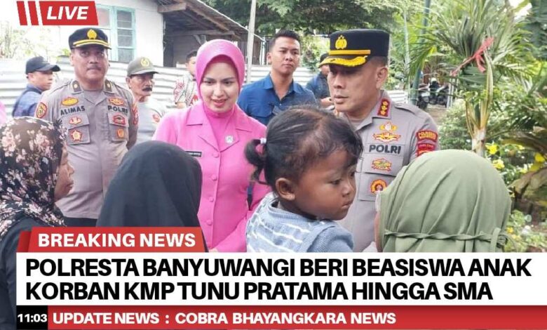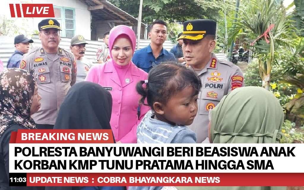 Kapolresta Banyuwangi, Kombes Pol Rama Samtama Putra yang mendatangi rumah korban memberikan beasiswa pendidikan hingga jenjang SMA kepada anak pertama.