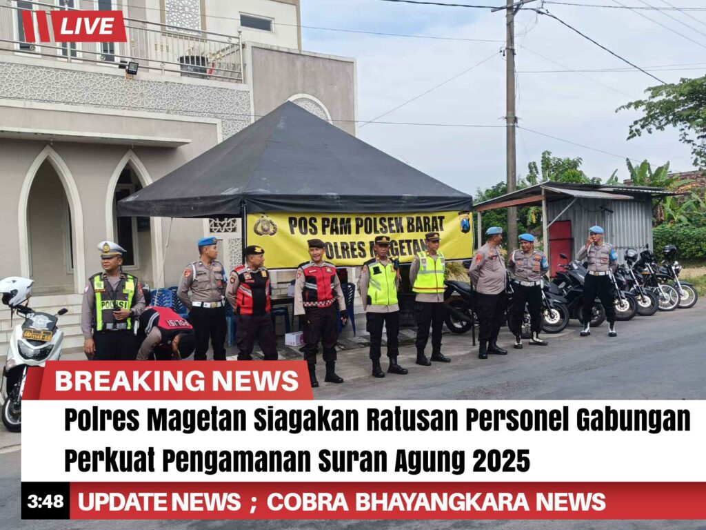 Menjaga kondusifitas keamanan dan ketertiban masyarakat saat kegiatan Suran Agung tahun 2025, Polres Magetan Polda Jatim menurunkan ratusan personel untuk melakukan pengamanan secara maksimal.