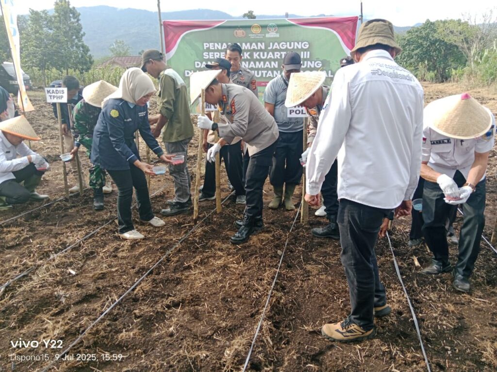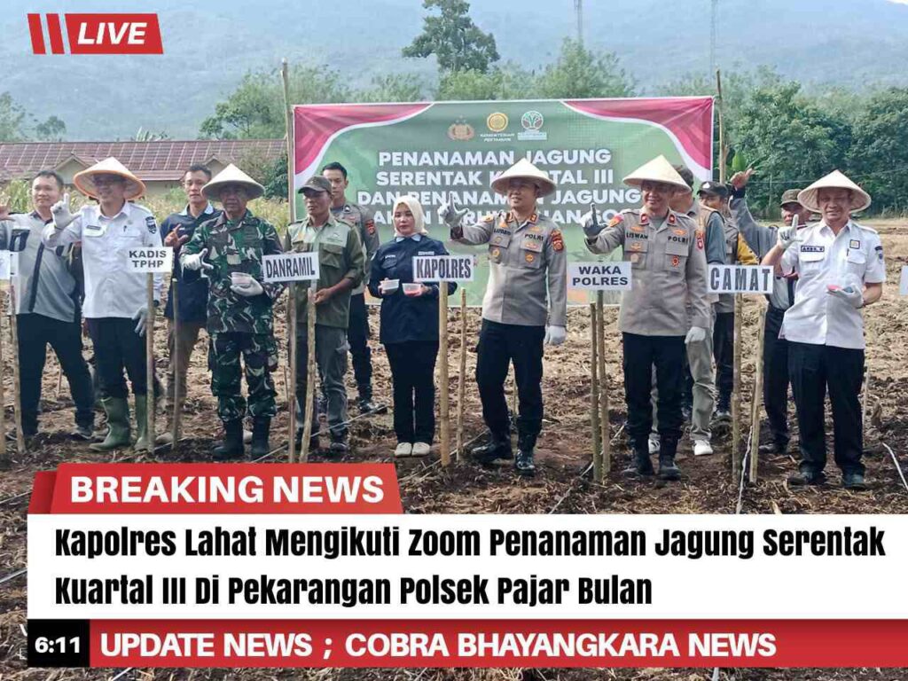 Kapolres Lahat, AKBP Novi Edyanto SIK. MIk, mengikuti Zoom Meeting penanaman jagung serentak kuartal III yang diselenggarakan oleh Mabes Polri bekerjasama dengan menteri Pertanian, Perkebunan dan Kehutanan. Kegiatan ini bertujuan untuk meningkatkan produksi jagung nasional dan memperkuat ketahanan pangan di wilayah Sumatera Selatan.