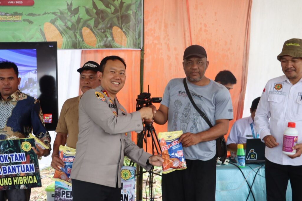 Kapolres Lahat dalam giat tersebut memberikan bantuan Benih Jagung, dan Pupuk, serta alat pertanian guna mendukung program Ketahanan Pangan Nasional.