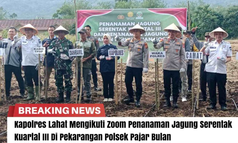 Kapolres Lahat, AKBP Novi Edyanto SIK. MIk, mengikuti Zoom Meeting penanaman jagung serentak kuartal III yang diselenggarakan oleh Mabes Polri bekerjasama dengan menteri Pertanian, Perkebunan dan Kehutanan. Kegiatan ini bertujuan untuk meningkatkan produksi jagung nasional dan memperkuat ketahanan pangan di wilayah Sumatera Selatan.
