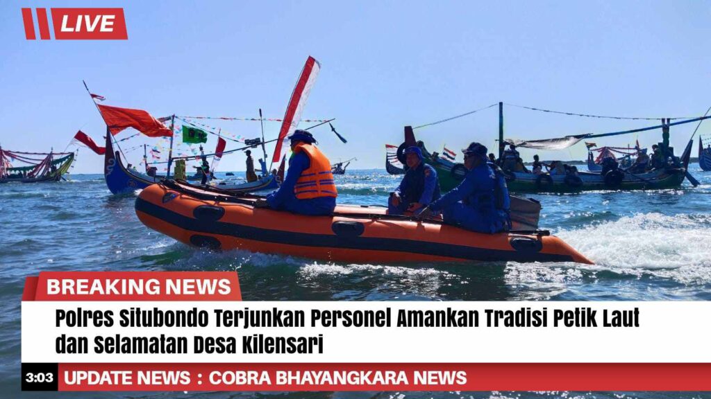 Polres Situbondo Polda Jatim melalui Satuan Polisi Perairan dan Udara (Satpolairud) melaksanakan pengamanan kegiatan Petik Laut dan Selamatan Desa Kilensari Tahun 2025, yang digelar di wilayah pesisir Desa Kilensari, Kecamatan Panarukan, Kabupaten Situbondo, Rabu pagi (9/7/2025).