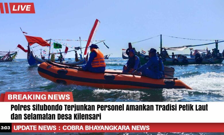 Polres Situbondo Polda Jatim melalui Satuan Polisi Perairan dan Udara (Satpolairud) melaksanakan pengamanan kegiatan Petik Laut dan Selamatan Desa Kilensari Tahun 2025, yang digelar di wilayah pesisir Desa Kilensari, Kecamatan Panarukan, Kabupaten Situbondo, Rabu pagi (9/7/2025).