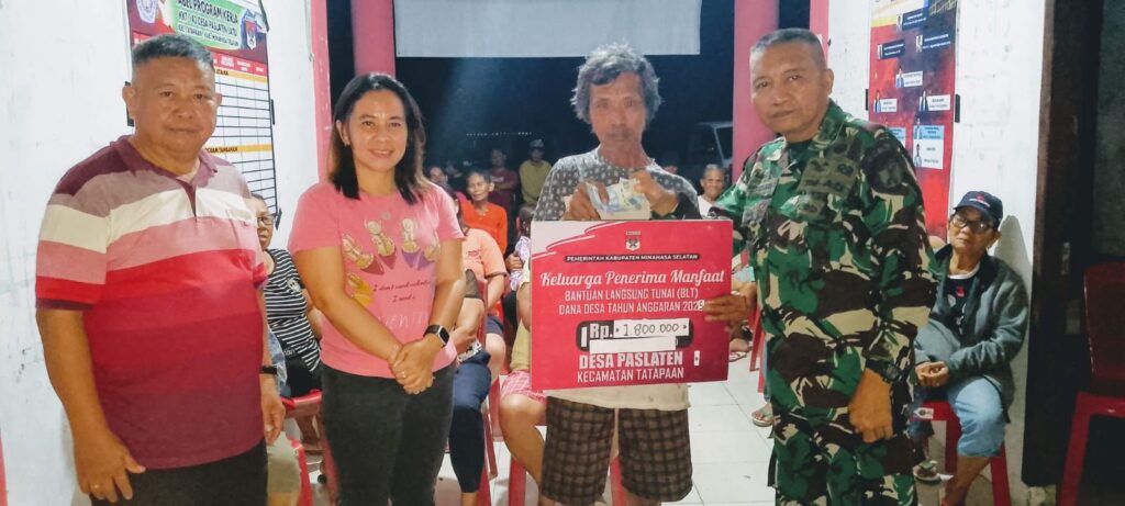 Sebanyak 25 Keluarga Penerima Manfaat (KPM) di Desa Paslaten Satu, Kecamatan Tatapaan, menerima Bantuan Langsung Tunai (BLT) dari pemerintah pada Jumat, 11 Juli 2025.