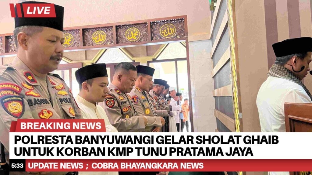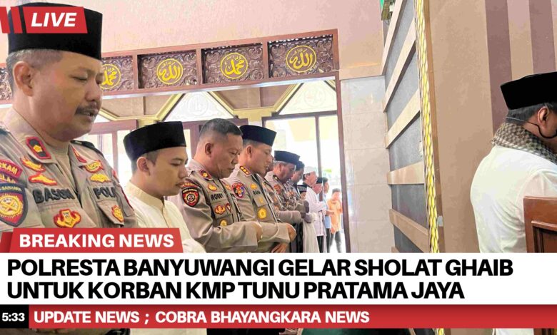 Polresta Banyuwangi Polda Jatim menggelar Sholat Ghaib sebagai bentuk penghormatan dan doa bagi para korban tenggelamnya KMP Tunu Pratama Jaya.