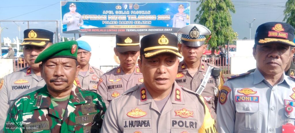 Polres Barito Selatan (Barsel) Kepolisian Daerah (Polda) Kalimantan Tengah (Kalteng) melaksanakan Apel Gabungan bersama pasukan TNI, Polri, POM XII2 Buntok, Satpol PP, Anggota Pemadam Kebakaran dan Penyelamatan dalam rangka Operasi Patuh Telabang Tahun 2025, yang dilaksanakan dihalaman Mako Satsamapta, Jalan Tugu Buntok, Senin, (14/07/2025).