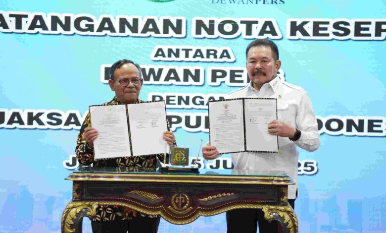 Kejaksaan Republik Indonesia dan Dewan Pers melaksanakan menandatangani Nota Kesepahaman (MoU) pada Selasa 15 Juli 2025, tentang “Koordinasi Dalam Mendukung Penegakan Hukum, Perlindungan Kemerdekaan Pers, Peningkatan Kesadaran Hukum Masyarakat, serta Peningkatan Kapasitas Sumber Daya Manusia”.