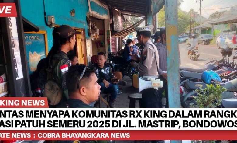 Dalam rangka meningkatkan kesadaran berlalu lintas di kalangan pengendara motor, khususnya komunitas roda dua, Satlantas Polres Bondowoso menggelar kegiatan “Polantas Menyapa Komunitas” yang kali ini menyasar komunitas RX King Bondowoso.