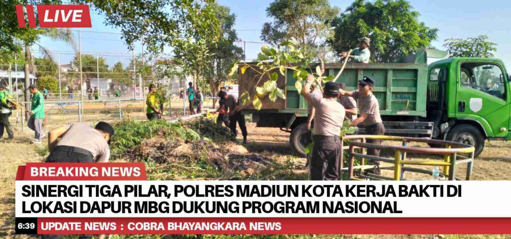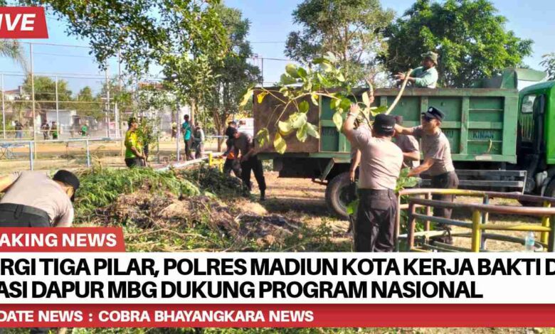 Dalam rangka mendukung program nasional “Makan Bergizi Gratis” (MBG) yang dicanangkan oleh Presiden Republik Indonesia dan diimplementasikan oleh Mabes Polri, jajaran Forkopimda Madiun Kota menggelar kerja bakti di lokasi yang akan difungsikan sebagai dapur umum MBG di Gedung Serbaguna Ciliwung, Kelurahan Taman, Rabu (16/7/2025).