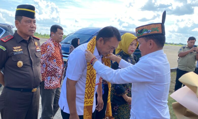 Tarian Adat Dayak Sambut KedatanganKajati Kalteng Agus Sahat Sampe Tua Lumban Gaol, S.H., M.H.