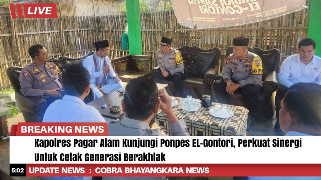 Kapolres Pagaralam AKBP Januar Kencana Setia Persada, S.I.K bersama Wakapolres, para pejabat utama, dan jajaran Brigadir Polri melaksanakan kunjungan silaturahmi ke Pondok Pesantren EL-Gontori di Kota Pagaralam, Kegiatan ini berlangsung di Jalan Sidik Adim Airlangga, Kelurahan Kuripan babas kecamatan Pagaralam Utara.
