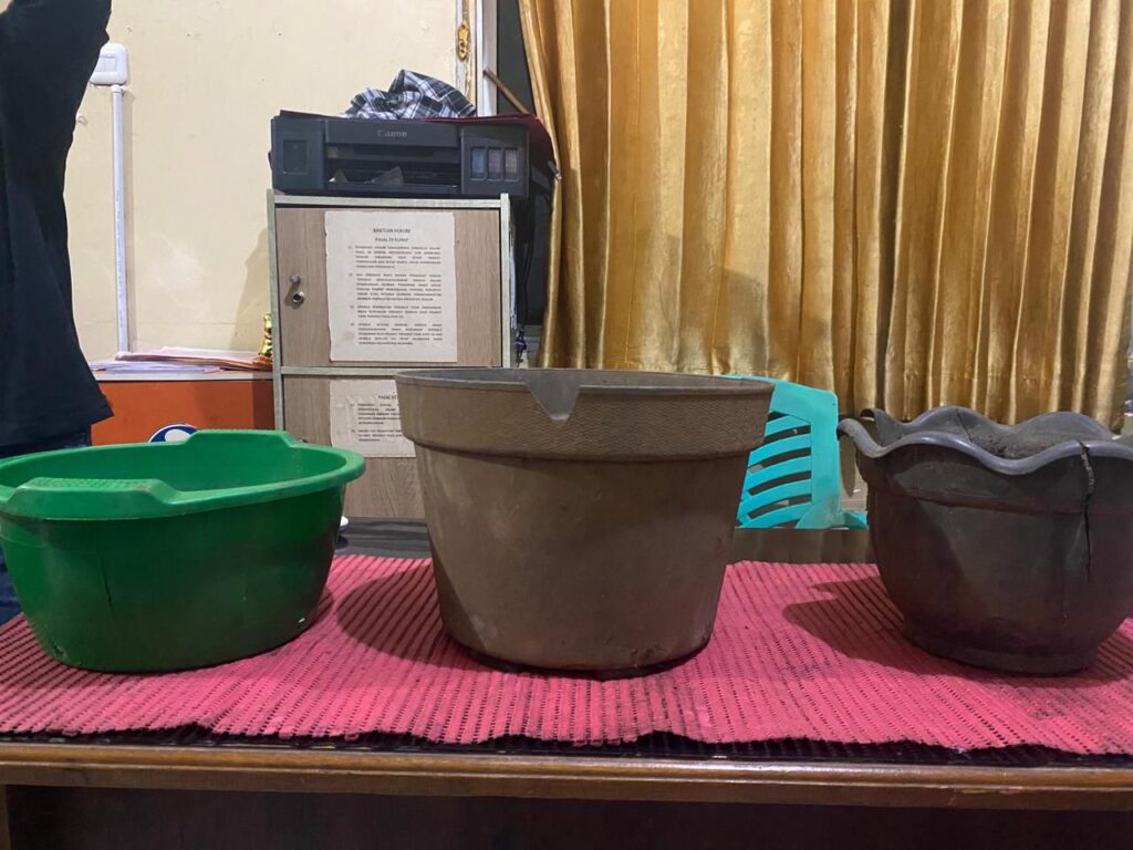 - 1 (satu) Unit Handphone android merk ITEL A26 warna hijau; . 3 (tiga) Buah pot plastik berwarna Hitam dan hitam;