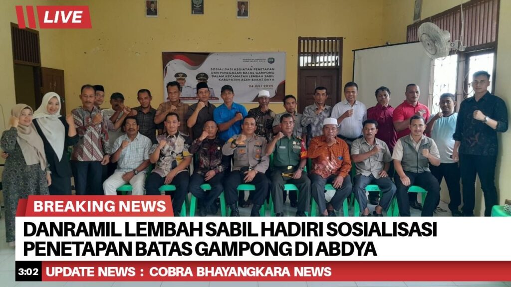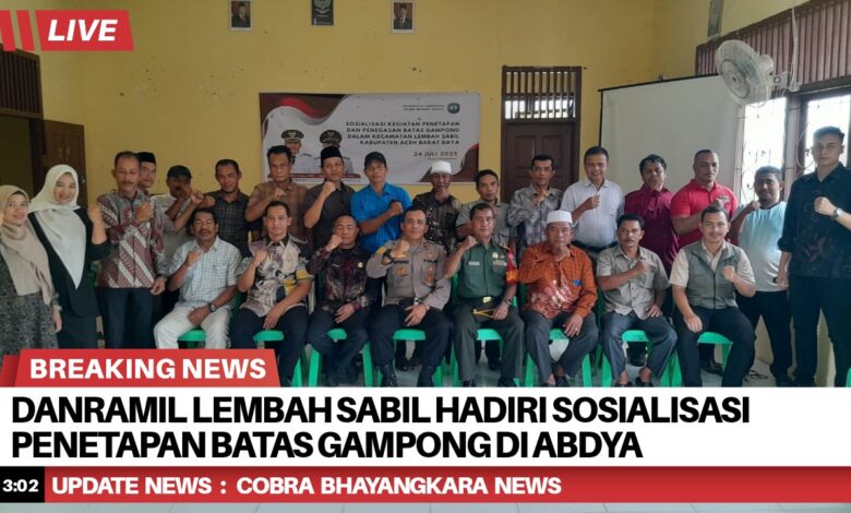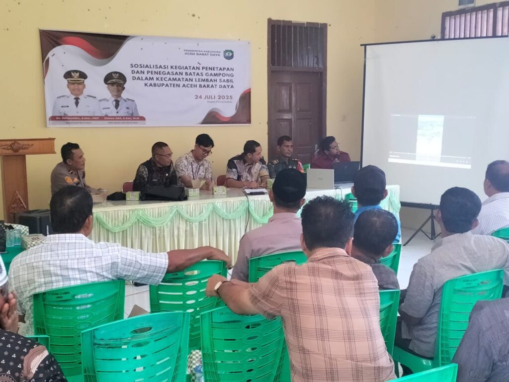 Komandan Koramil 09/Lembah Sabil Kodim 0110/Abdya Lettu Inf Zahari menghadiri acara sosialisasi penetapan dan pengesahan batas wilayah Gampong di aula kantor Camat Lembah Sabil, di Desa Cot Bak’U, Kamis (24/7/2025).