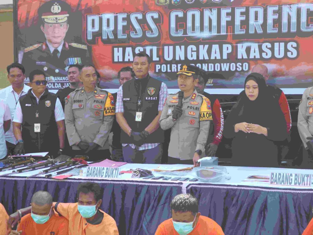 Polres Bondowoso menunjukkan kinerja cepatnya dalam memberantas tindak kejahatan dengan berhasil mengungkap kasus pencurian dengan pemberatan (curat) yang terjadi di tiga lokasi berbeda. Dalam sebuah konferensi pers yang digelar di halaman Polres Bondowoso, Kapolres AKBP Harto Agung Cahyono, S.H., S.I.K., M.H., didampingi oleh para Pejabat Utama (PJU), secara resmi mengumumkan penangkapan dua orang tersangka. Kedua pelaku kini dijerat dengan Pasal 363 ayat (2) Kitab Undang-Undang Hukum Pidana (KUHP) dan terancam hukuman pidana penjara paling lama sembilan tahun.