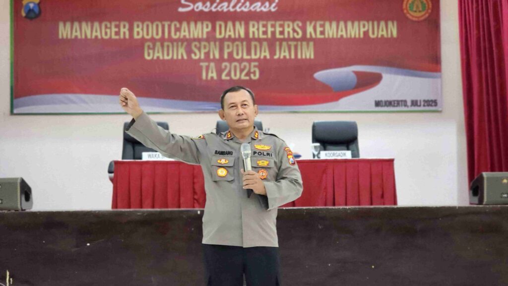 Sekolah Kepolisian Negara (SPN) Polda Jawa Timur (Jatim) menggelar kegiatan Sosialisasi Manager Bootcamp dan Refresh Kemampuan Gadik (tenaga pendidik) di Gedung Dharma SPN Polda Jatim, Kecamatan Bangsal, Kabupaten Mojokerto.