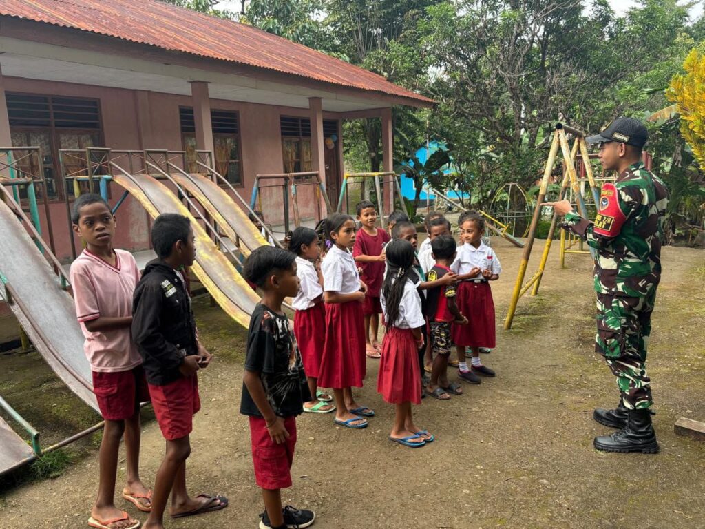 Kecamatan Bikomi Nilulat, 26 Juli 2025 – Dalam upaya menanamkan nilai-nilai kebangsaan, dua personel dari Pos Nilulat yang dipimpin oleh Wadanpos Sertu Kukuh Dwi P. melaksanakan kegiatan Wawasan Kebangsaan (Wasbang) di Sekolah Dasar Kristen (SDK) Nilulat, Kecamatan Bikomi Nilulat, Kabupaten Timor Tengah Utara (TTU).