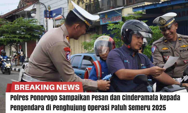 Dalam rangka pelaksanaan Operasi Patuh Semeru 2025, Satuan Lalu Lintas Polres Ponorogo menggelar kegiatan simpatik dengan memberikan cinderamata kepada para pengendara yang dinilai tertib dalam berlalu lintas.