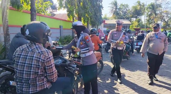 “Kami hadir di tengah masyarakat bukan hanya untuk pengamanan, tapi juga memberikan perhatian. Hari ini kami bagikan minuman teh segar dan permen kepada para pengendara yang sedang mengantri BBM karena cuaca sangat panas dan rawan membuat orang dehidrasi atau bahkan pingsan,” ujar Pria asal Blitar ini.