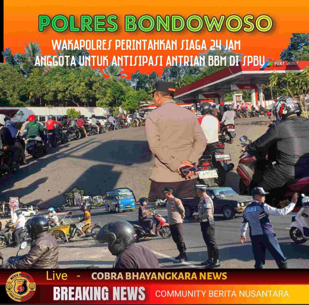 Bondowoso, 30 Juli 2025 – Situasi antrean pengisian Bahan Bakar Minyak (BBM) di sejumlah Stasiun Pengisian Bahan Bakar Umum (SPBU) di Kabupaten Bondowoso menunjukkan perbaikan yang menggembirakan. Hal ini terpantau langsung oleh Wakapolres Bondowoso, Kompol I Gede Suartika S.H., M.H., yang memimpin kegiatan pemantauan dan pengecekan ketersediaan BBM pada hari Rabu, 30 Juli 2025, sejak pukul 06.30 WIB.