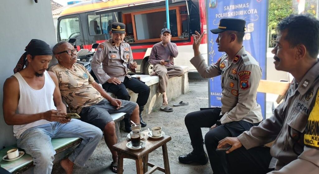 Guna meningkatkan kesadaran masyarakat dalam menjaga keamanan dan ketertiban di lingkungan sekitar, personel Satuan Pembinaan Masyarakat (Satbinmas) Polres Kediri Kota Polda Jatim melaksanakan kegiatan yang bertajuk “Gas Kopling” (Kopi Keliling).