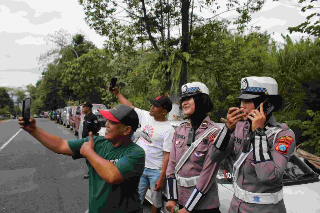Pasalnya, banyak warga yang justru minta foto bareng dengan Polwan cantik dari Satuan Lalu Lintas Polres Bondowoso Polda Jatim yang hadir berbagi minuman gratis untuk warga yang antri BBM di sejumlah SPBU Bondowoso.