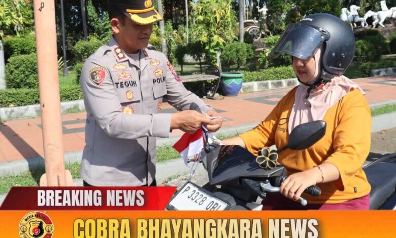 Polresta Banyuwangi Berbagi Bendera Merah Putih Sambut HUT Kemerdekaan RI ke – 80