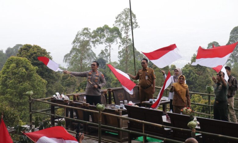 Momentum diawali dengan pengibaran bendera Merah Putih oleh seluruh peserta, mencerminkan semangat nasionalisme yang tumbuh dari desa-desa produktif di lereng Gunung Lawu.
