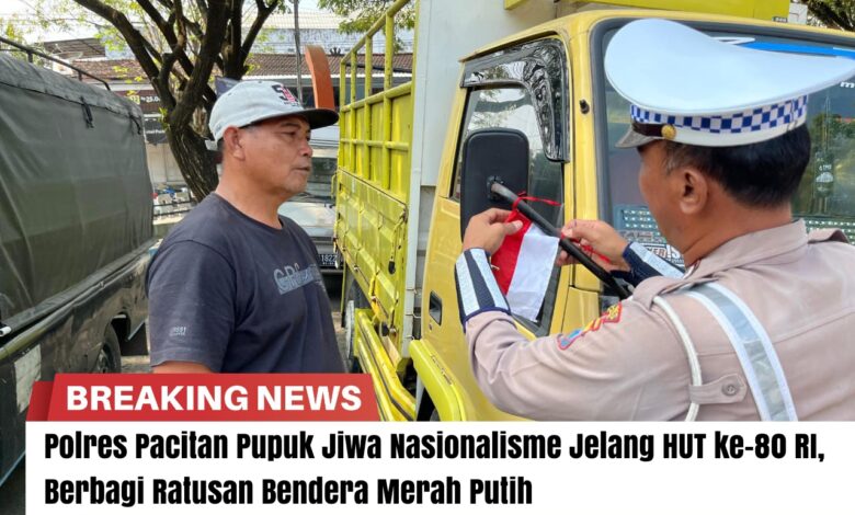Polres Pacitan Pupuk Jiwa Nasionalisme Jelang HUT ke-80 RI, Berbagi Ratusan Bendera Merah Putih