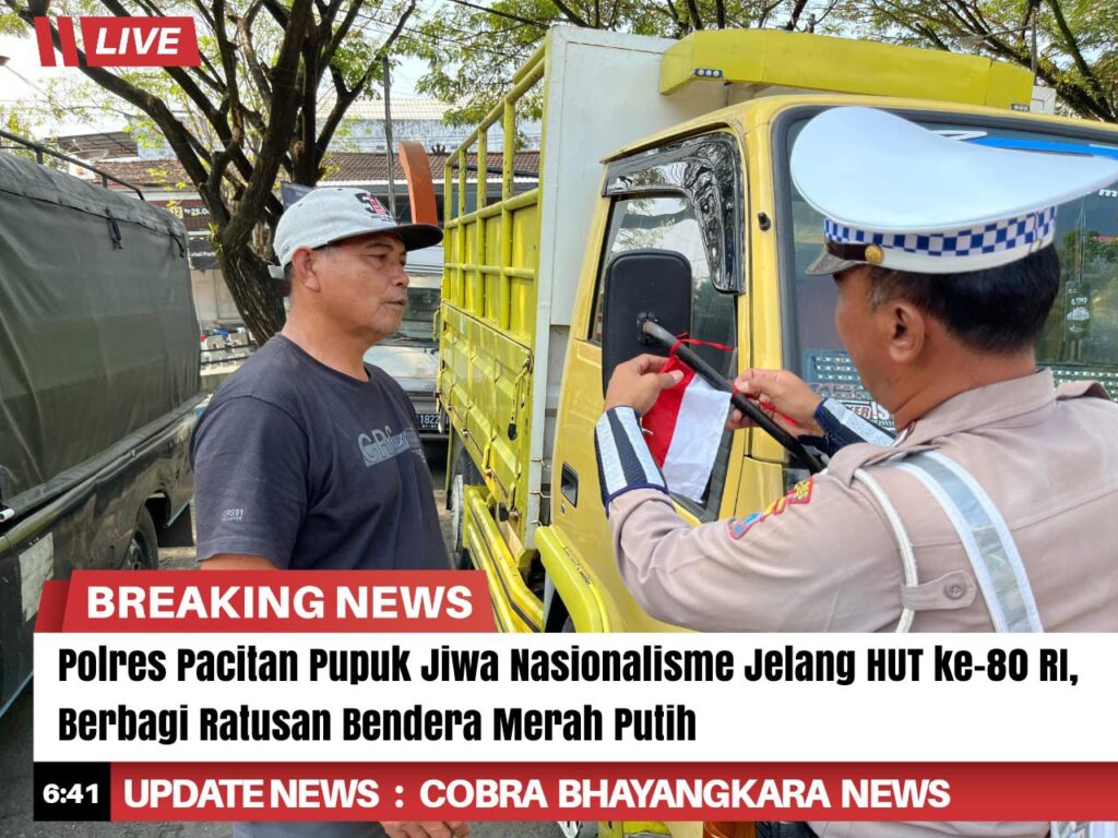 Polres Pacitan Polda Jatim punya cara tersendiri untuk memperkuat semangat nasionalisme masyarakat menjelang Hari Ulang Tahun (HUT) ke-80 Republik Indonesia.