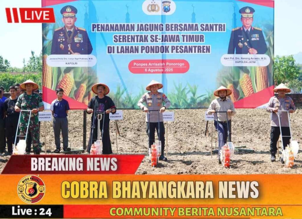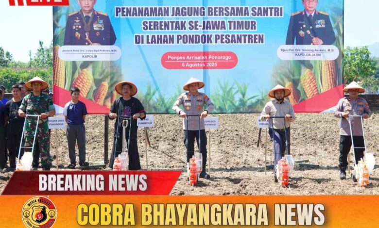 Program ketahanan pangan nasional melalui Penanaman Jagung Bersama Santri Serentak Seluruh Jawa Timur resmi digelar serentak, Rabu (6/8/2025).