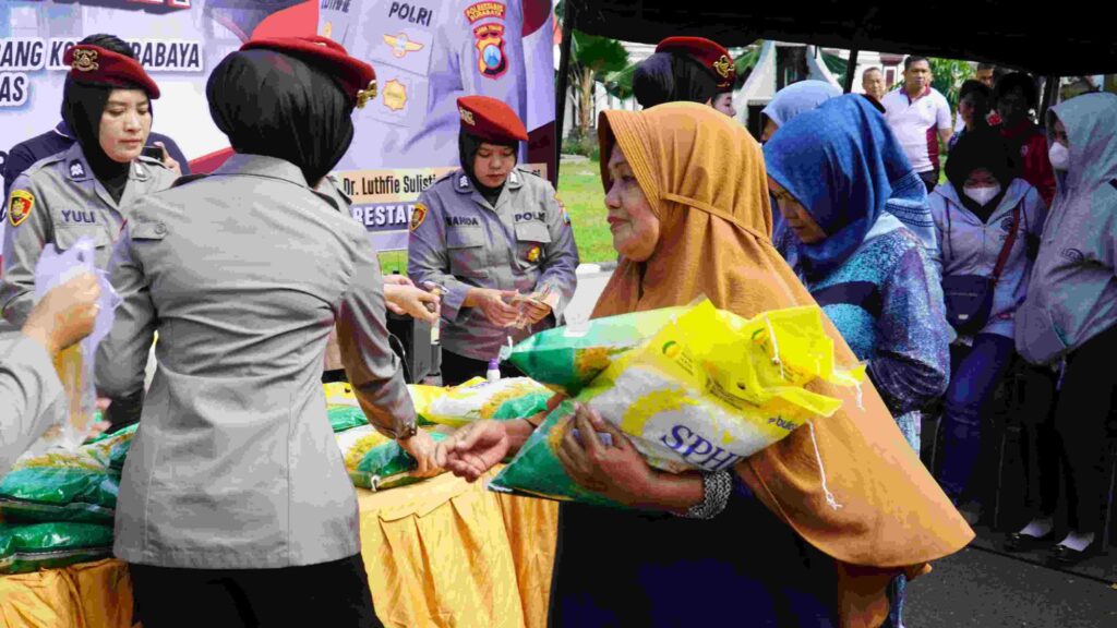 Kepolisian Resor Kota Besar (Polrestabes) Surabaya Polda Jatim kembali menunjukkan kepeduliannya terhadap kondisi sosial ekonomi masyarakat Kota Surabaya dengan menggelar Gerakan Pangan Murah secara serentak di seluruh wilayah hukumnya, Jumat (8/8/2025).