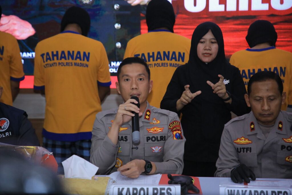 Kapolres Madiun AKBP Kemas Indra Natanegara menjelaskan, penangkapan pertama dilakukan terhadap DS di tepi Jalan Raya Madiun–Ponorogo, Kecamatan Geger, Rabu (04/06/2025). Dari tangan DS, polisi menemukan 0,43 gram sabu-sabu.