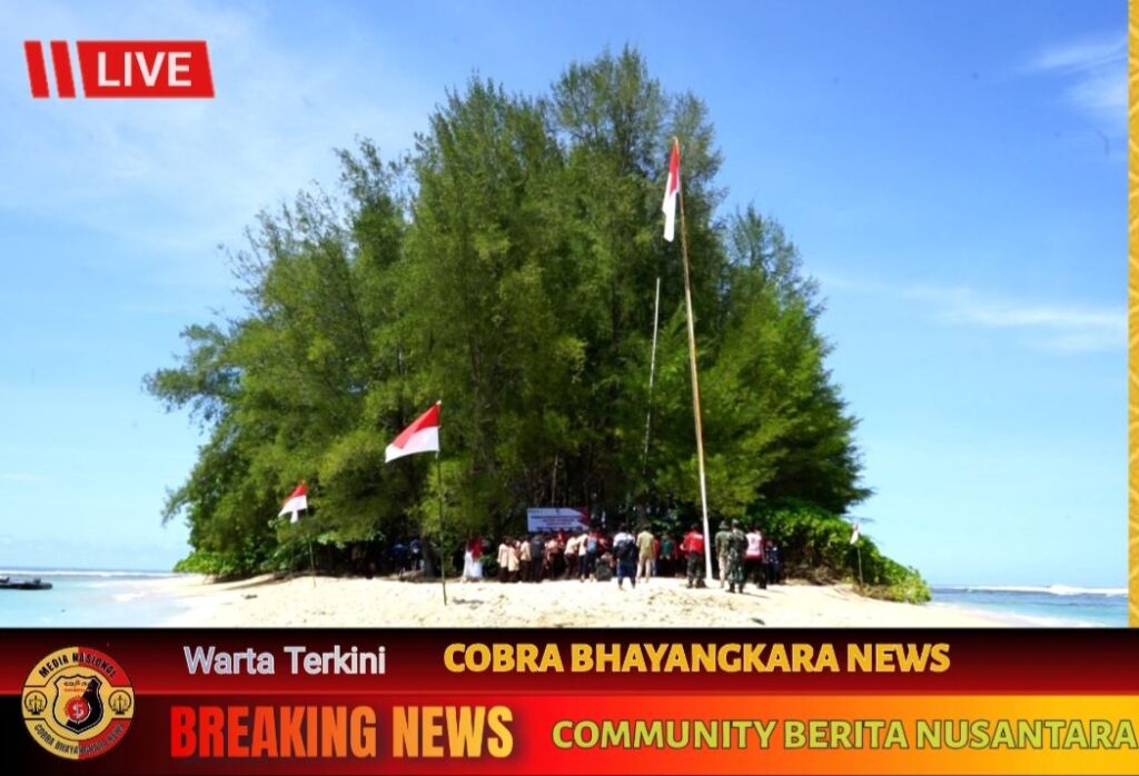 Personel TNI bersama gabungan Polri, Tagana, mahasiswa, Pramuka, serta komponen lintas sektoral dalam Kabupaten Aceh Barat Daya (Abdya) melaksanakan pengibaran Bendera Merah Putih raksasa di Pulau Gosong, pesisir Desa Ujung Serangga Kecamatan Susoh, Sabtu (9/8/2025).