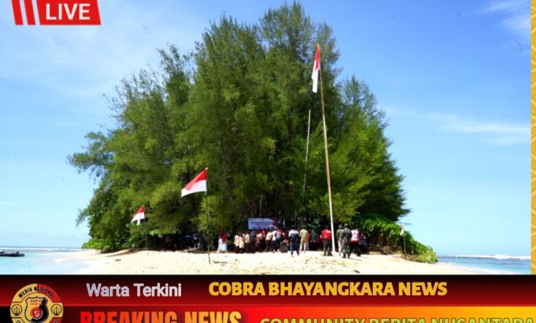 Personel TNI bersama gabungan Polri, Tagana, mahasiswa, Pramuka, serta komponen lintas sektoral dalam Kabupaten Aceh Barat Daya (Abdya) melaksanakan pengibaran Bendera Merah Putih raksasa di Pulau Gosong, pesisir Desa Ujung Serangga Kecamatan Susoh, Sabtu (9/8/2025).