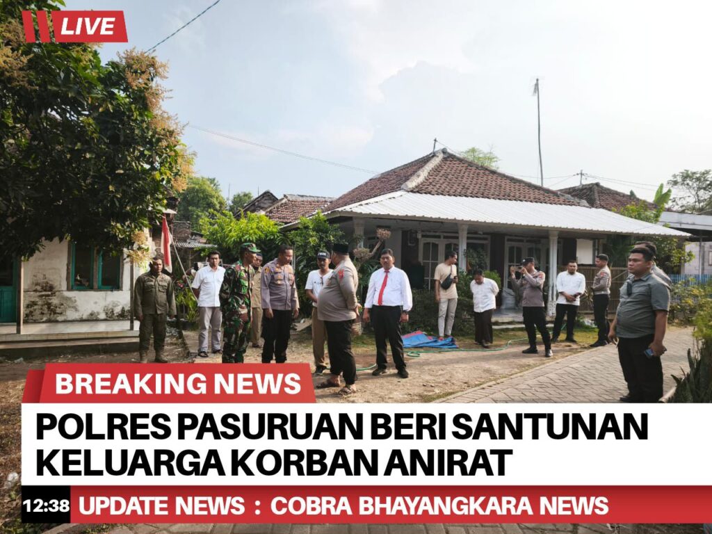 Hadir dalam kunjungan tersebut antara lain Kasat Lantas AKP Derie Fradesca, Camat Wonorejo Mulyohadi, dan Kades Abdul Rokhim. Kapolsek menegaskan, langkah ini bagian dari pendekatan humanis Polres Pasuruan atas musibah yang terjadi di masyarakat.