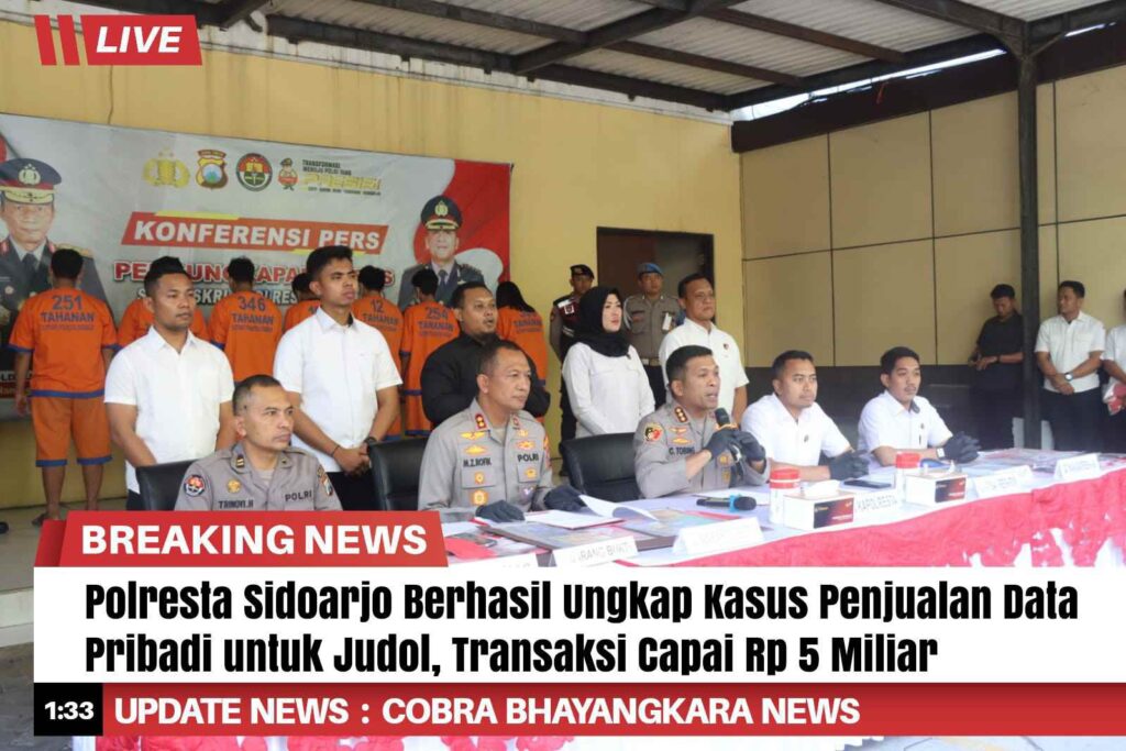 Satreskrim Polresta Sidoarjo Polda Jatim berhasil mengungkap kasus penjualan data pribadi, berupa rekening bank yang digunakan sebagai sarana dalam melakukan judi online.