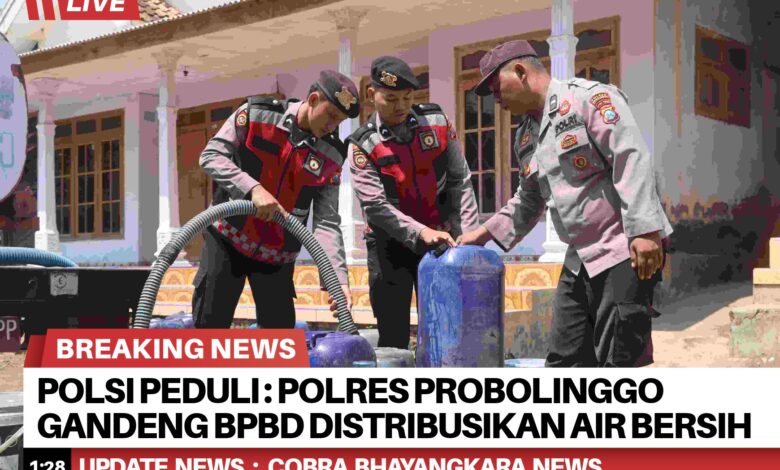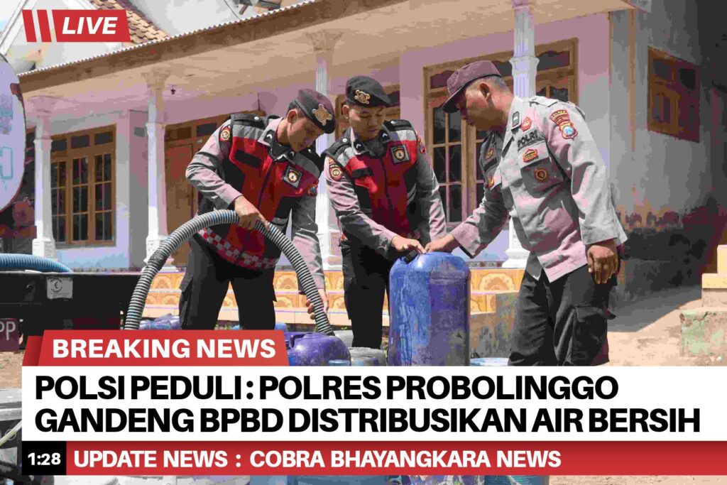 Polsi Peduli : Polres Probolinggo Gandeng BPBD Distribusikan Air Bersih untuk Warga Tiris