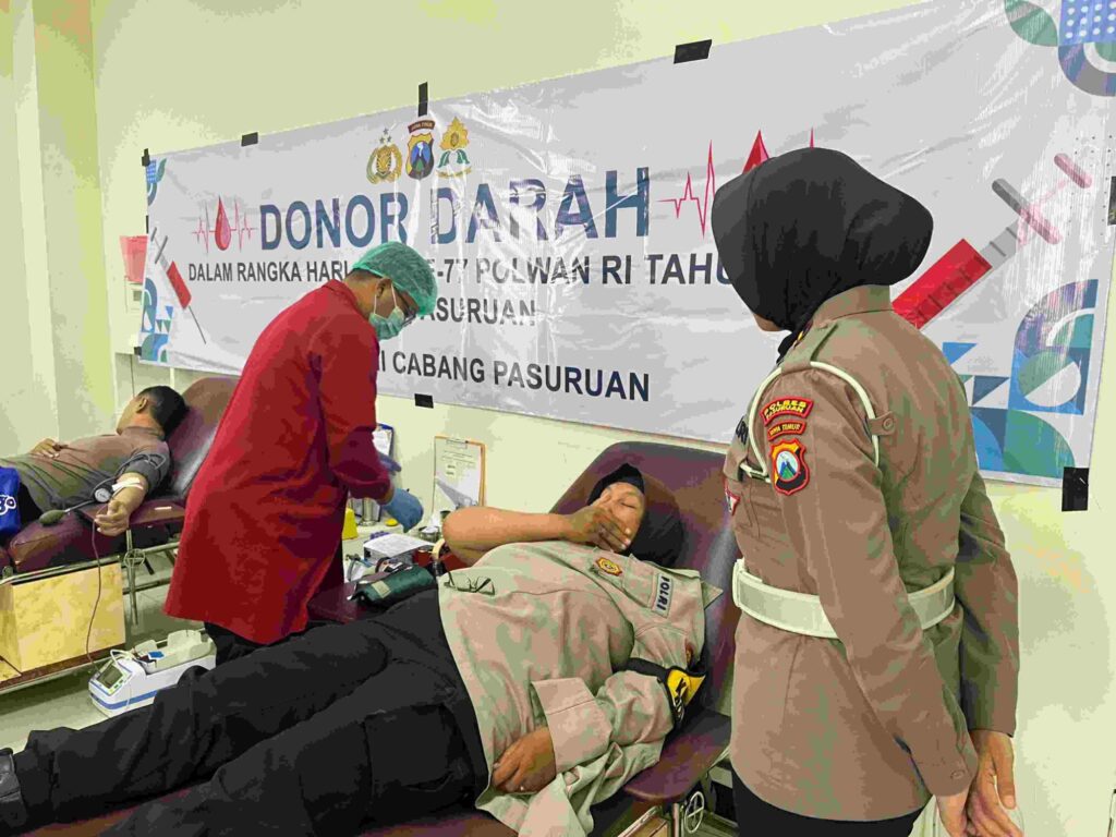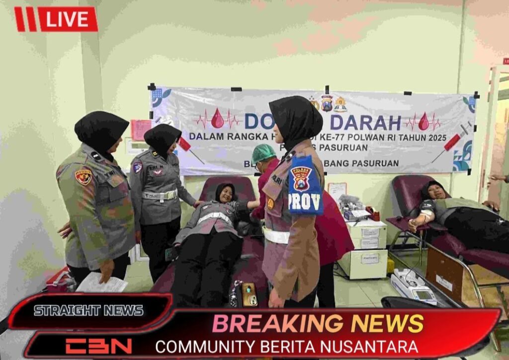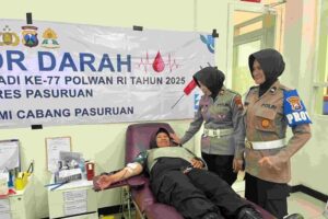 Dalam rangka memperingati Hari Jadi ke-77 Polisi Wanita (Polwan) Republik Indonesia, Polwan Polres Pasuruan menggelar kegiatan donor darah yang berlangsung pada Kamis (14/8/2025) di Kantor Palang Merah Indonesia (PMI) Kabupaten Pasuruan. Acara dimulai pukul 08.00 WIB hingga selesai dengan suasana penuh kekeluargaan dan semangat berbagi.