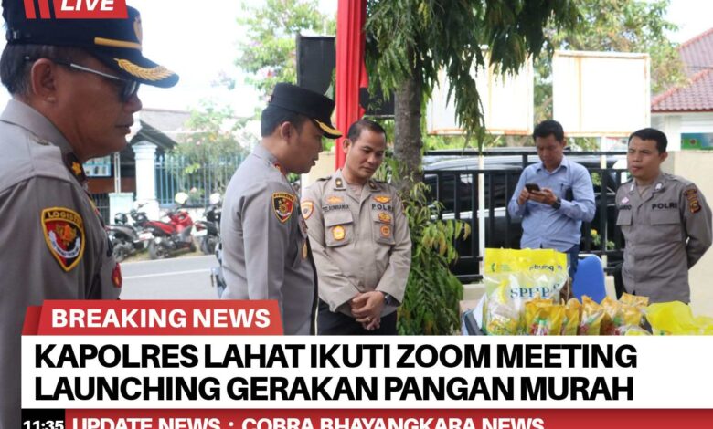 Kapolres Lahat AKBP Novi Edyanto SIK.MIK, yang di dampingi, Kabulog Lahat, Kakanperindak,Asisten II Pemda Lahat, Waka Polres Kompol Liswan Nurhapis SH, para PJU, mengikuti Zoom Meeting Launching Gerakan Pangan Murah yang digelar secara nasional, bekerja sama dengan Perum Bulog. Kegiatan ini bertujuan untuk memastikan ketersediaan bahan pangan pokok dengan harga terjangkau bagi masyarakat, sekaligus menjaga stabilitas pangan di wilayah,