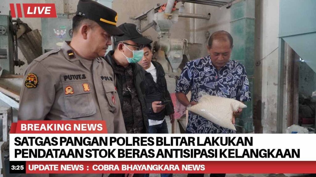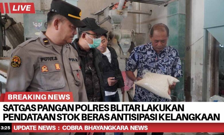 Satgas Pangan Polres Blitar Polda Jawa Timur (Jatim) bersama instansi terkait melaksanakan pendataan realisasi pendistribusian beras oleh produsen maupun distributor di wilayah hukum Polres Blitar, Jumat (15/8/2025).