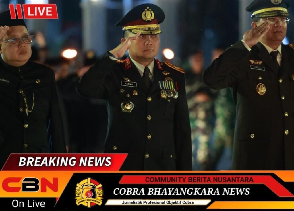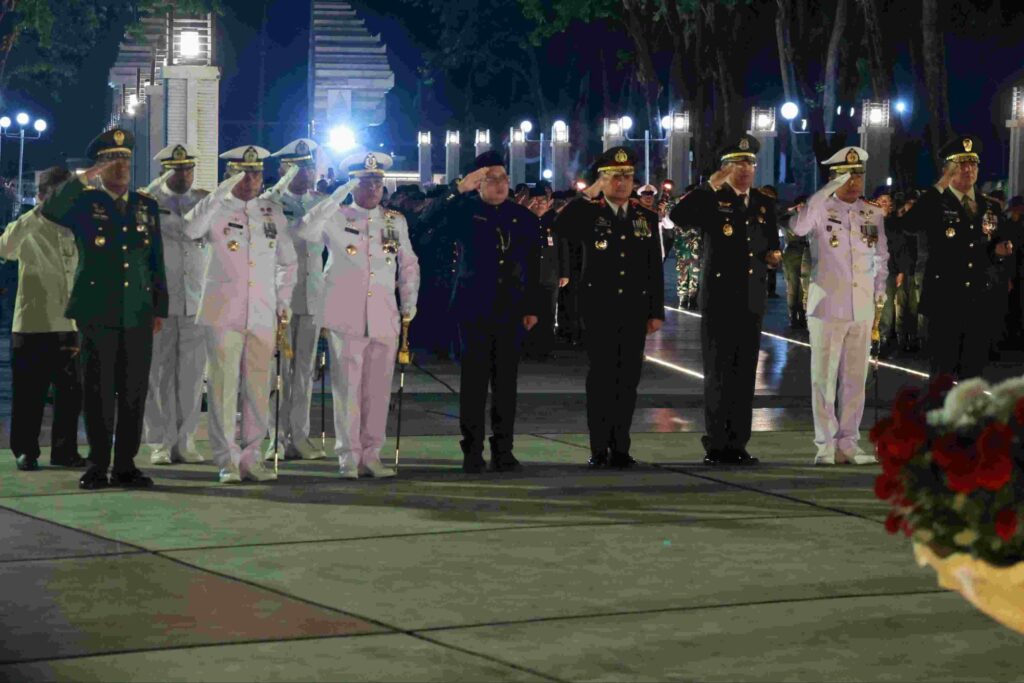 Wakapolda Jawa Timur, Brigjen Pol Dr. Pasma Royce, S.I.K., M.H didampingi Pejabat Utama (PJU) Polda Jatim, menghadiri kegiatan Renungan Suci di Taman Makam Pahlawan (TMP) Surabaya, Sabtu malam (16/8/2025).