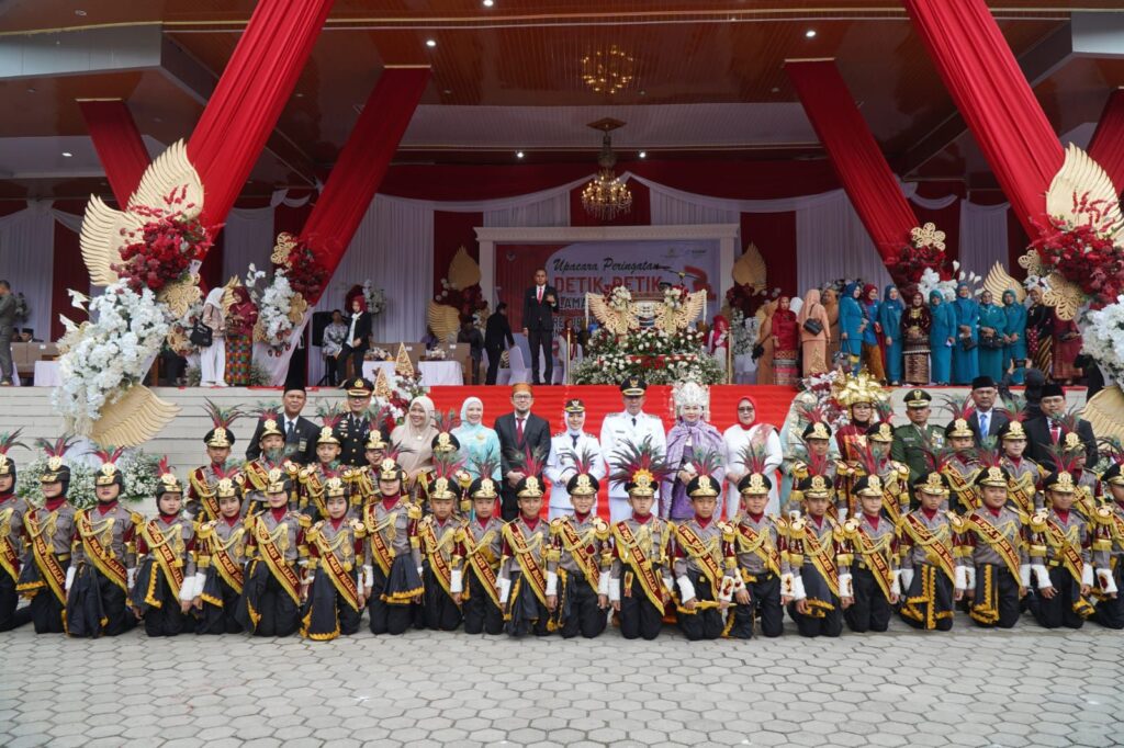 Momen paling sakral terlihat saat Pasukan Paskibraka mengibarkan bendera Merah Putih. Dengan penuh semangat, bendera berkibar gagah di langit Alun-Alun Utara, menambah rasa haru dan bangga seluruh peserta upacara.